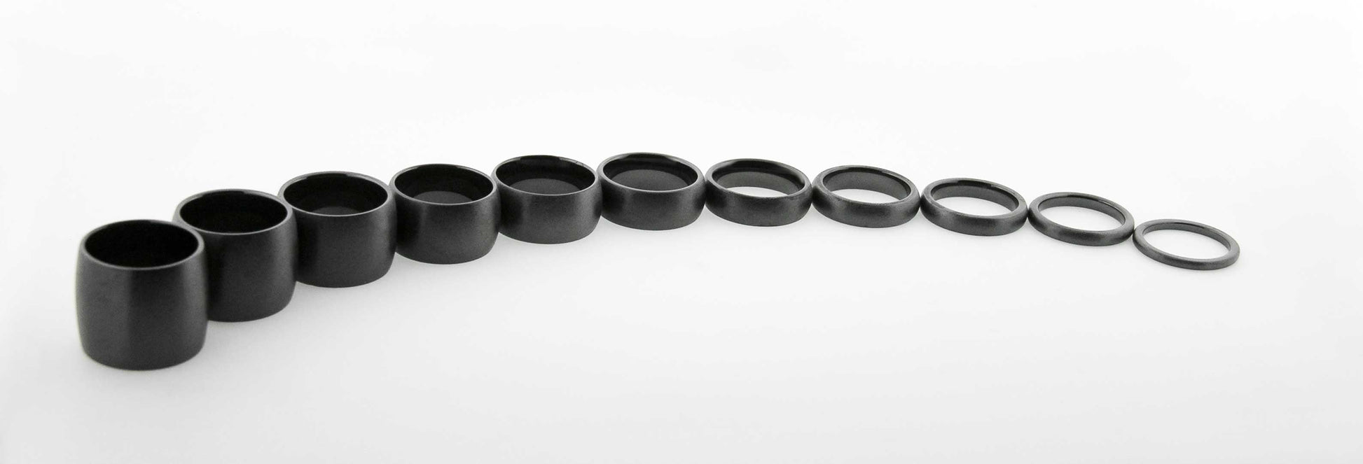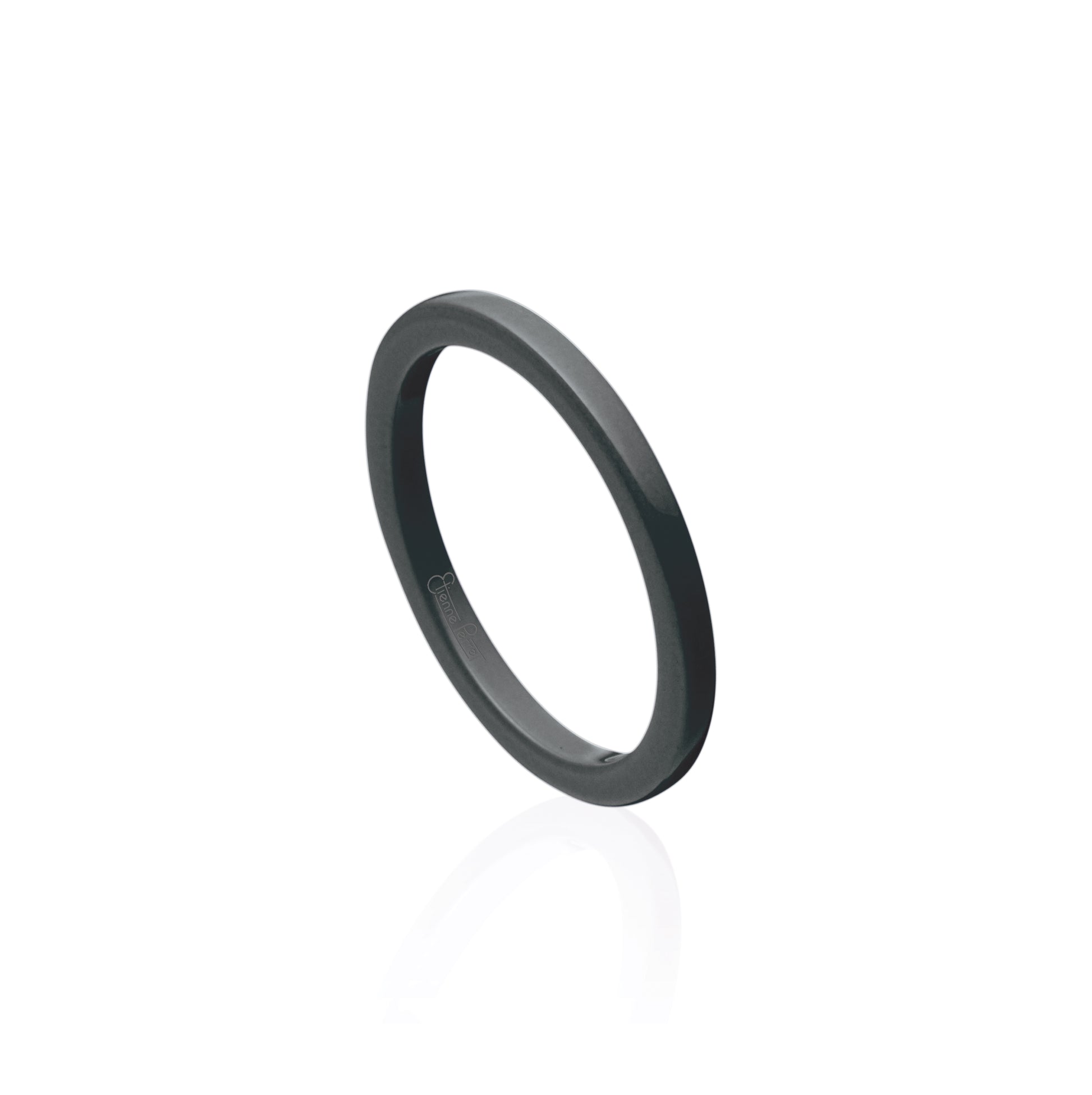 Two-Millimeter Wide Black Gem Ceramic Band with comfort fit inside. Étienne uses the precise dimensions of ceramic machining to show elegant concentricity with his Ceramic Collection. Timeless Jet Black color and Dome profile.