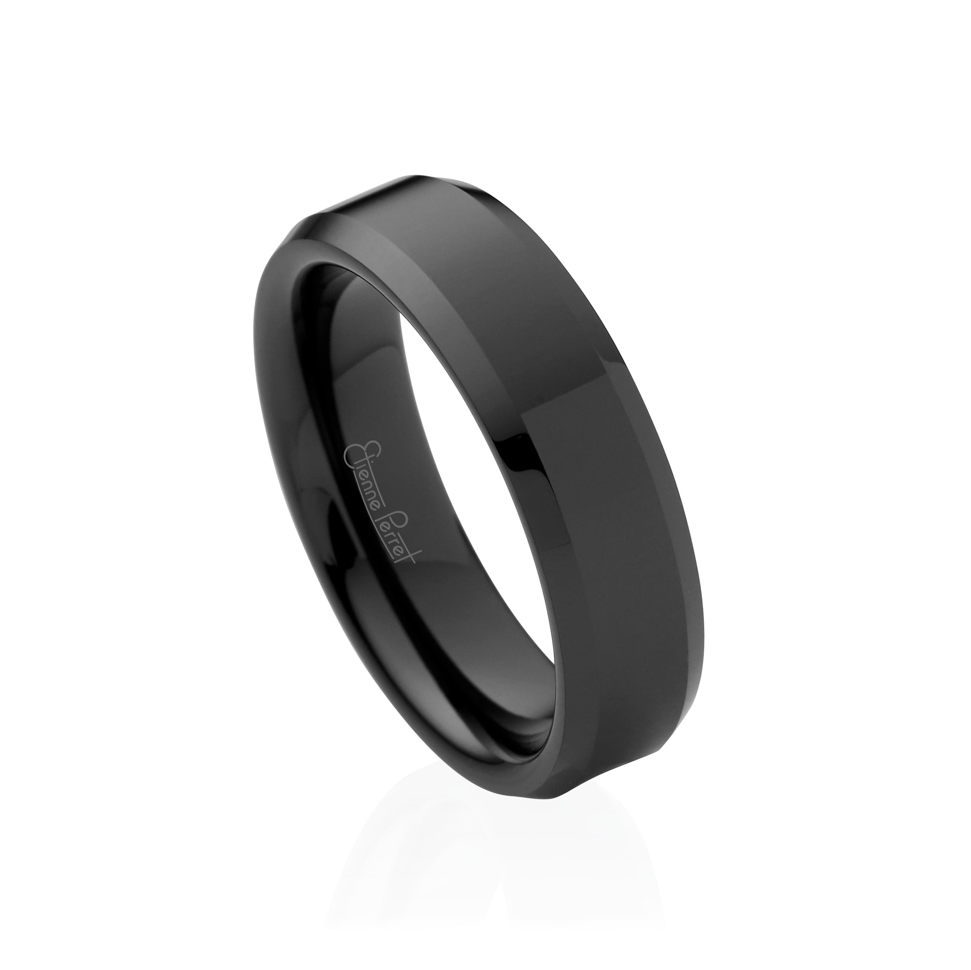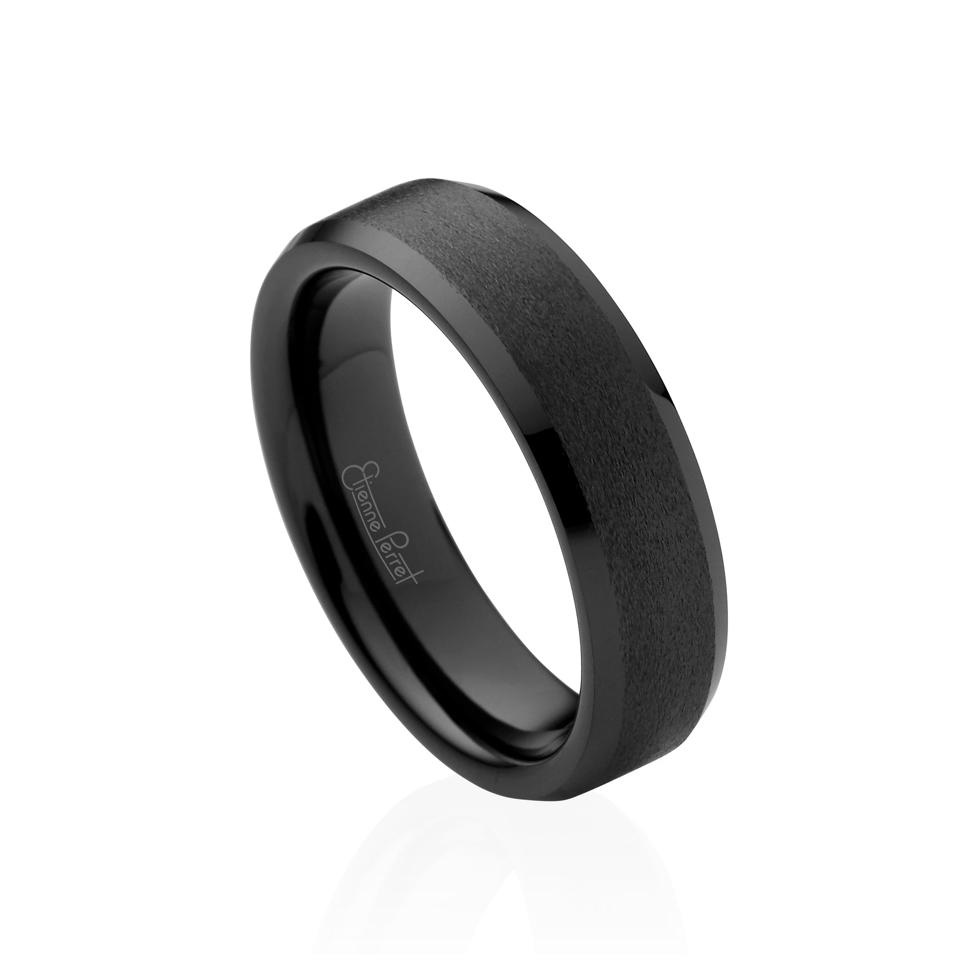 Six-Millimeter Wide Black Gem Ceramic Band with comfort fit inside. Étienne uses the precise dimensions of ceramic machining to show elegant concentricity with his Ceramic Collection. Jet Black color and Bevel Edge profile.