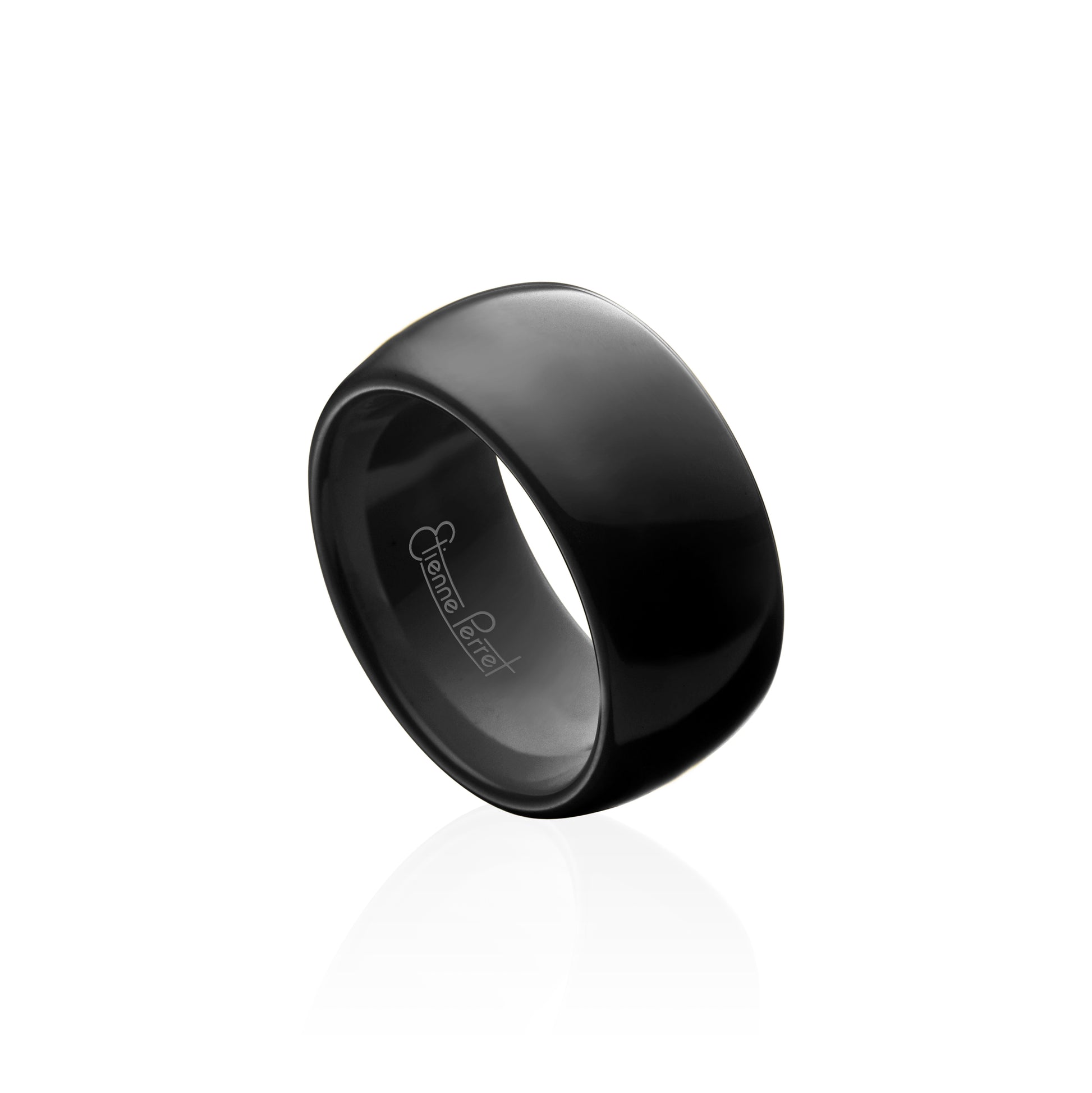 Twelve-Millimeter Wide Black Gem Ceramic Band with comfort fit inside. Étienne uses the precise dimensions of ceramic machining to show elegant concentricity with his Ceramic Collection. Timeless Jet Black color and Dome profile.