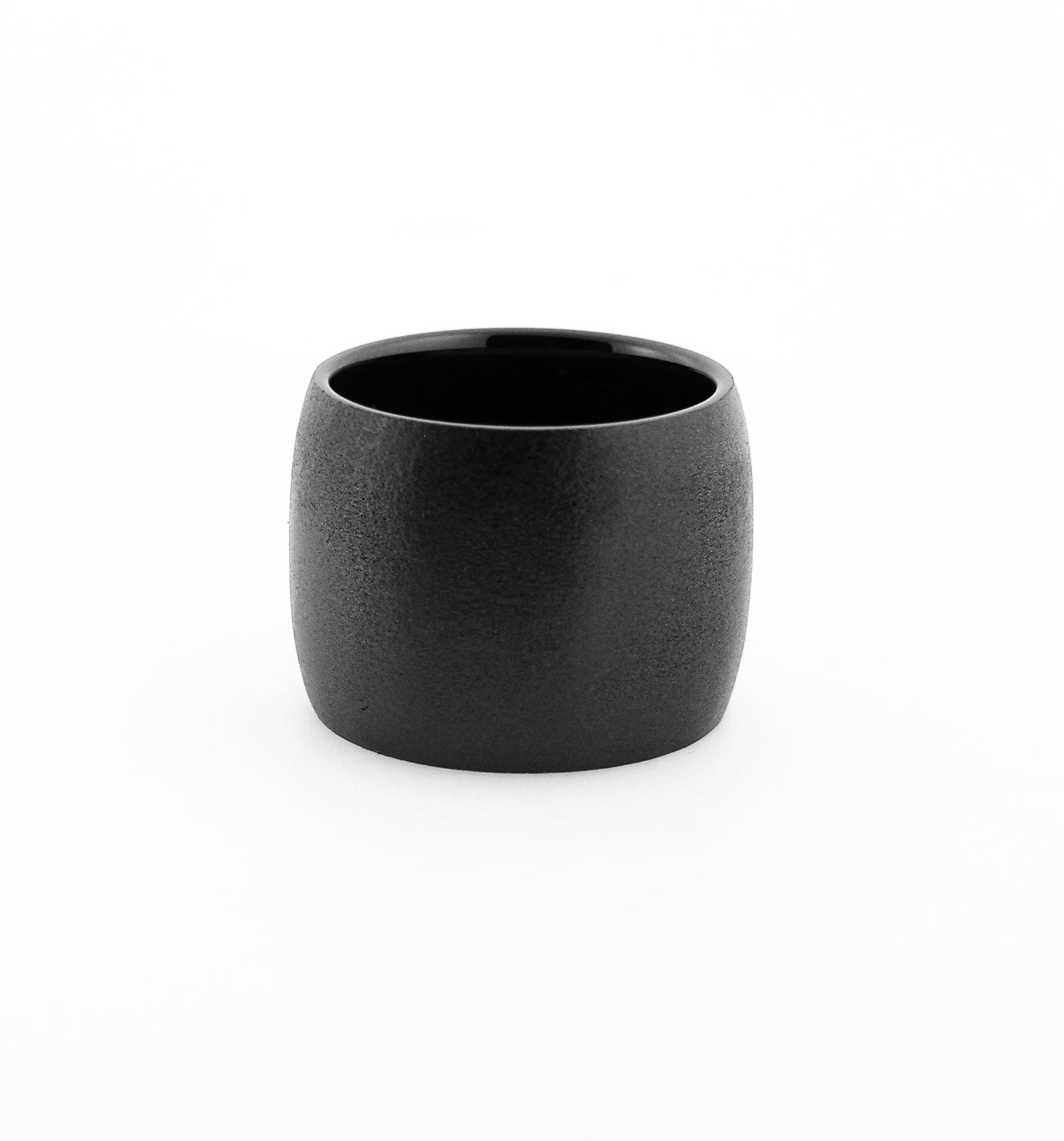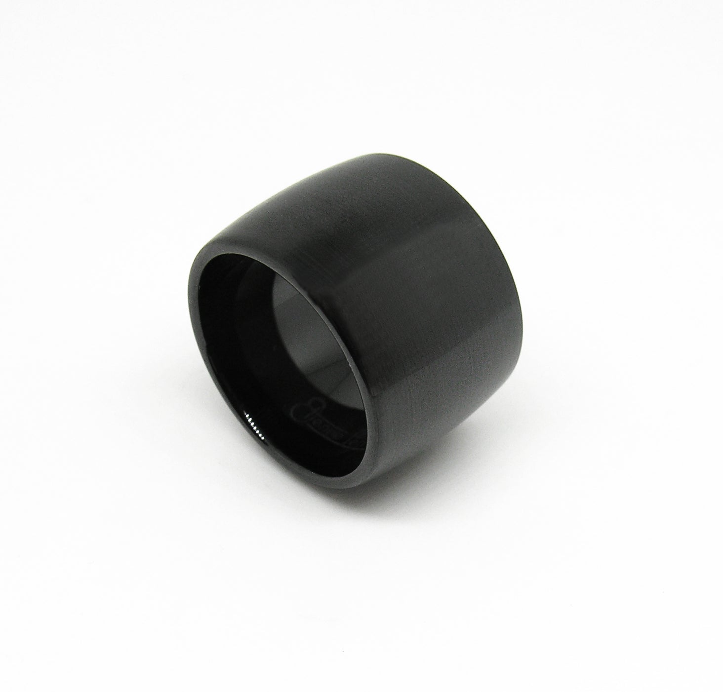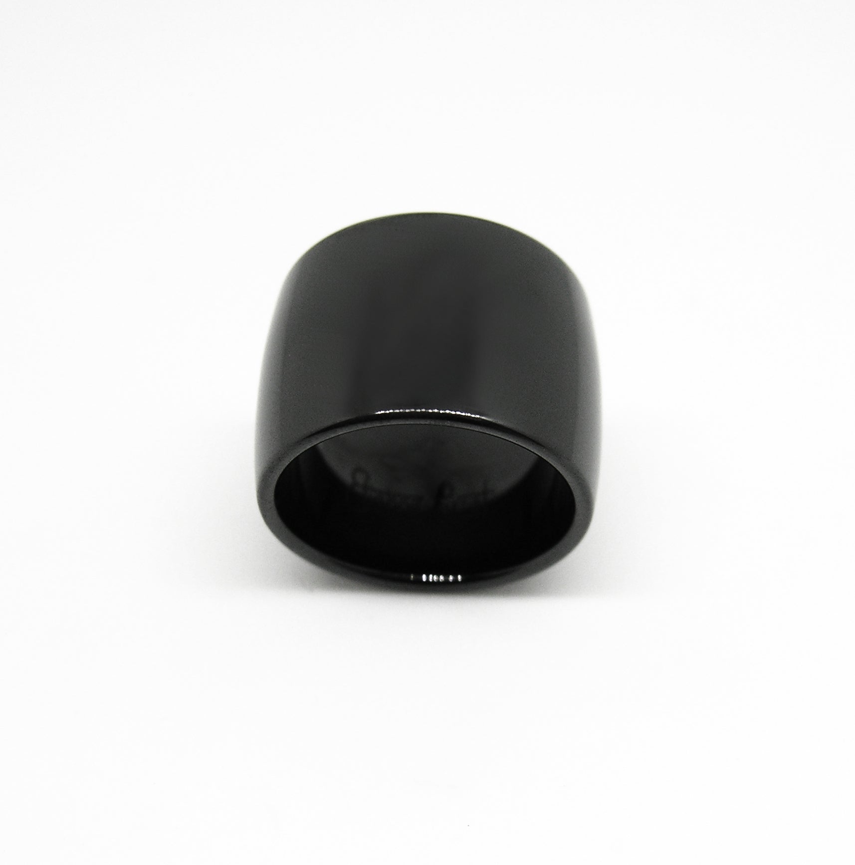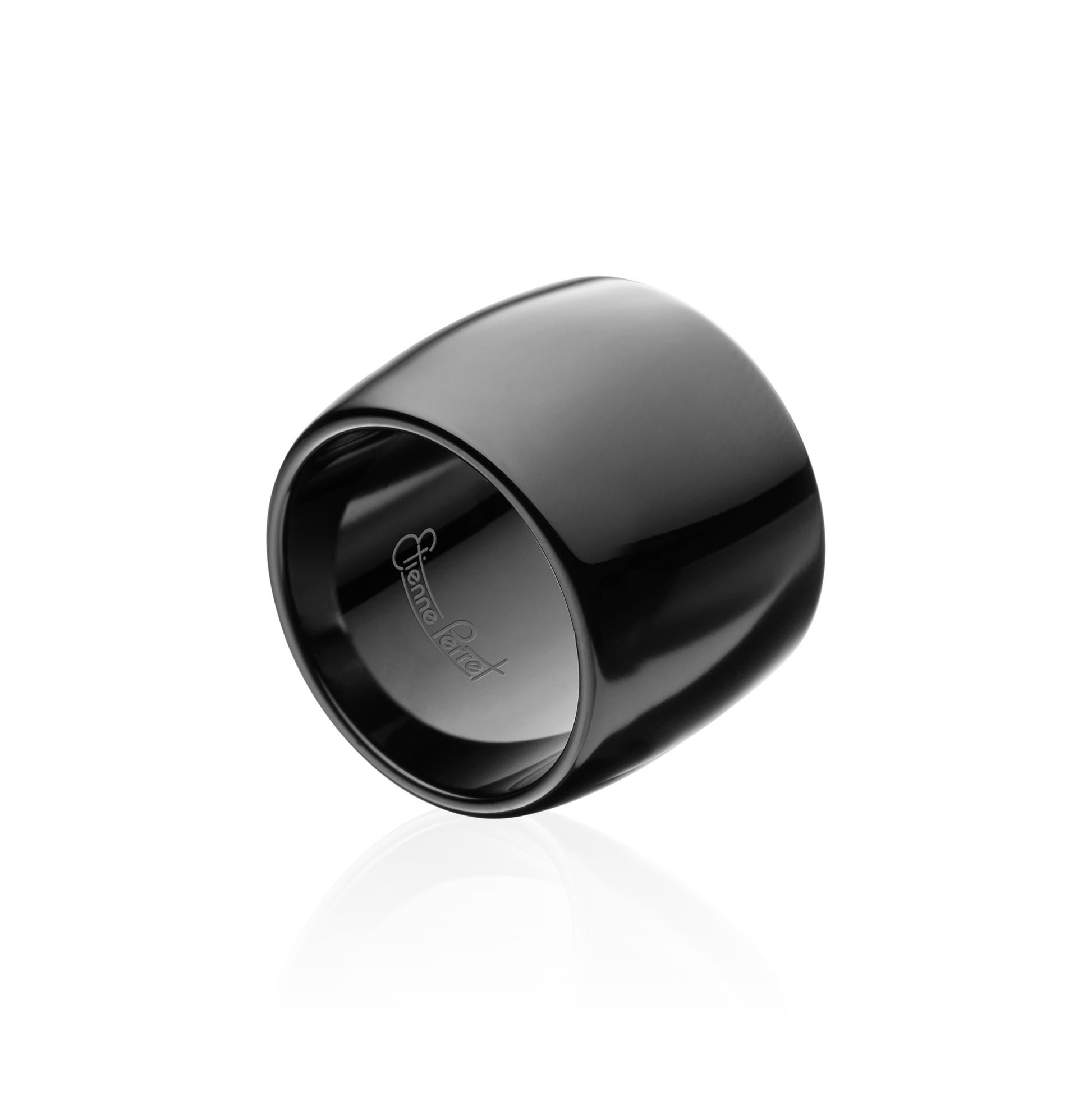 Sixteen-Millimeter Wide Black Gem Ceramic Band with comfort fit inside. Étienne uses the precise dimensions of ceramic machining to show elegant concentricity with his Ceramic Collection. Timeless Jet Black color and Dome profile.