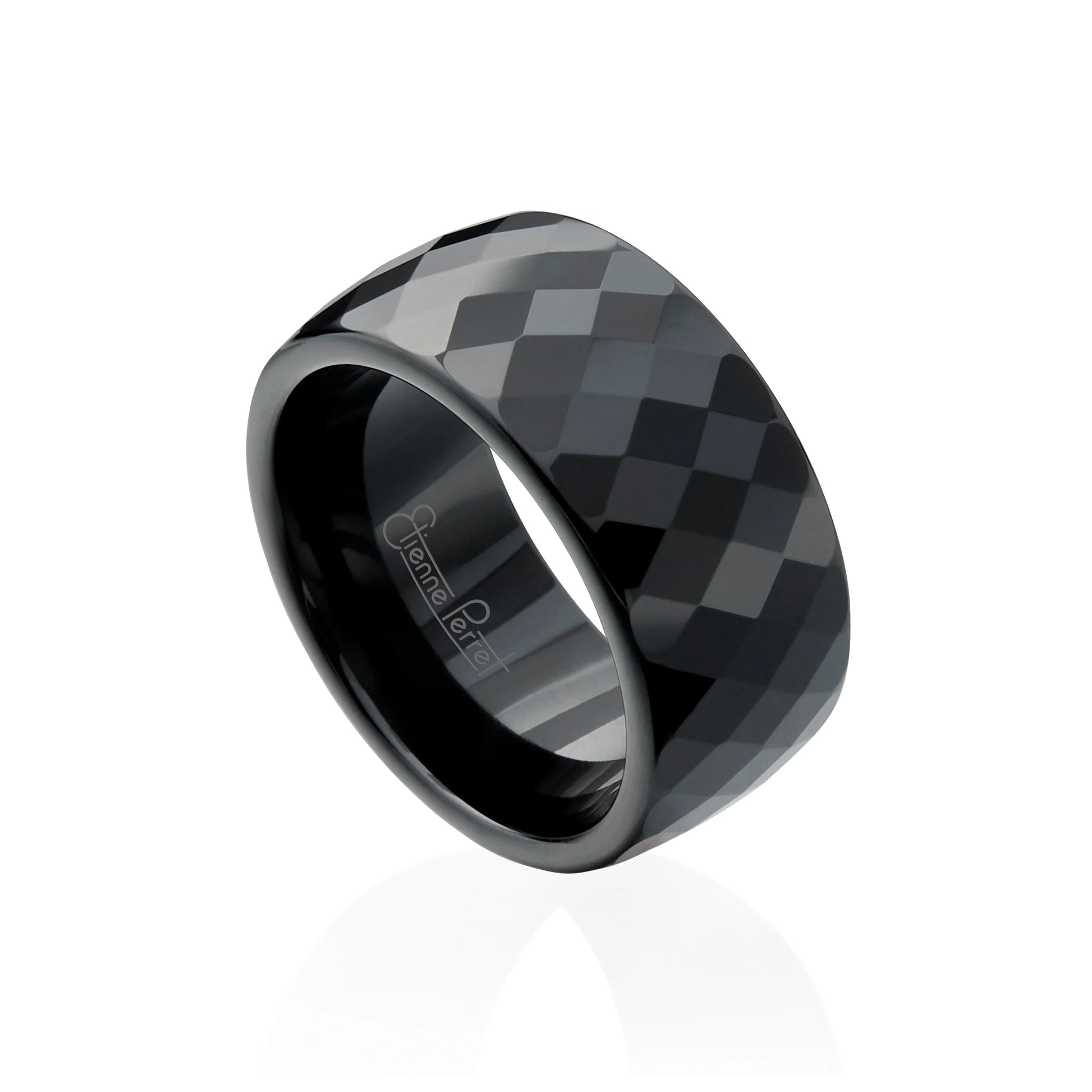 Two-Millimeter Wide Black Gem Ceramic Band with comfort fit inside. Étienne uses the precise dimensions of ceramic machining to show elegant concentricity with his Ceramic Collection. Timeless Jet Black color and Faceted finish.