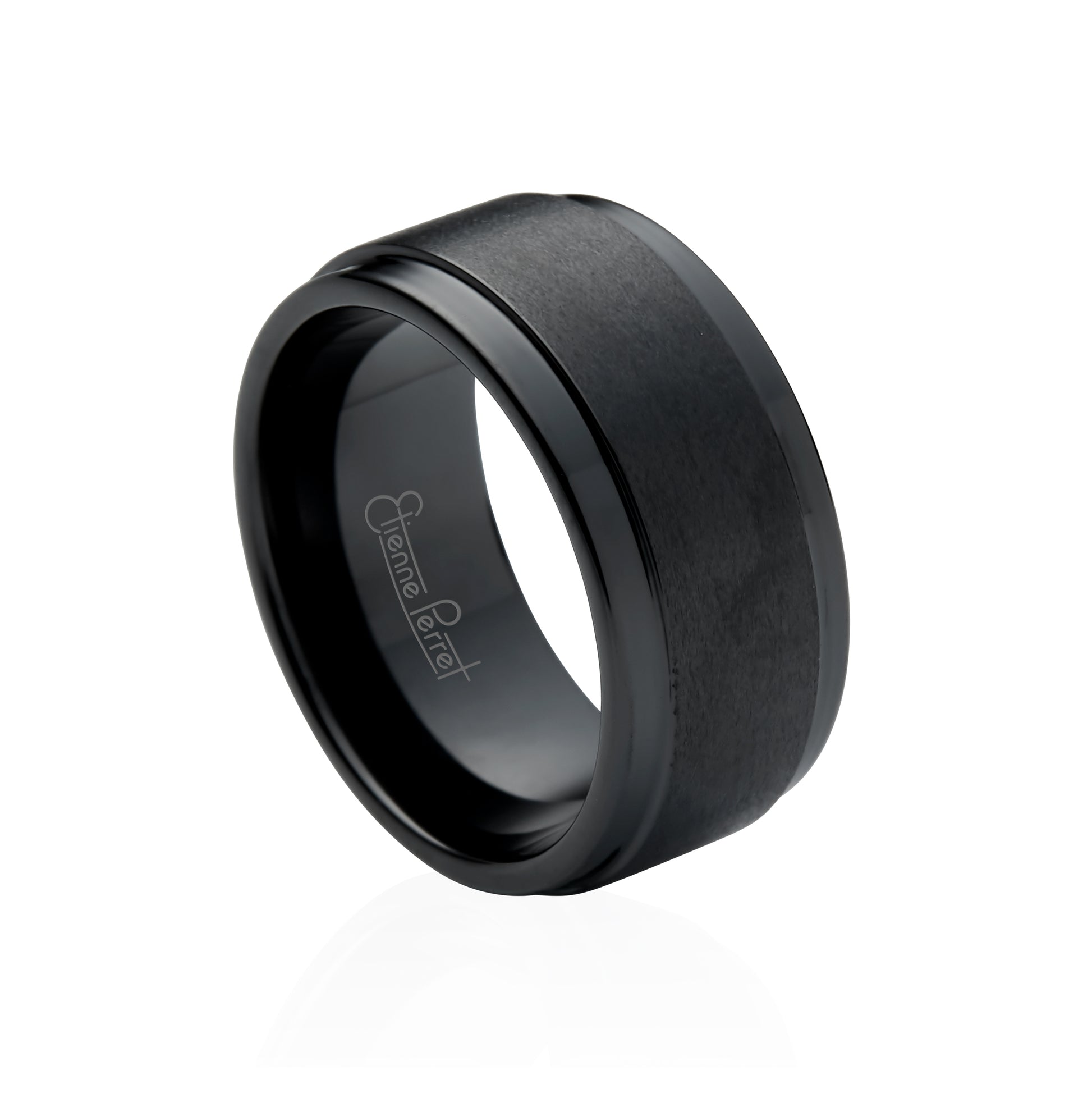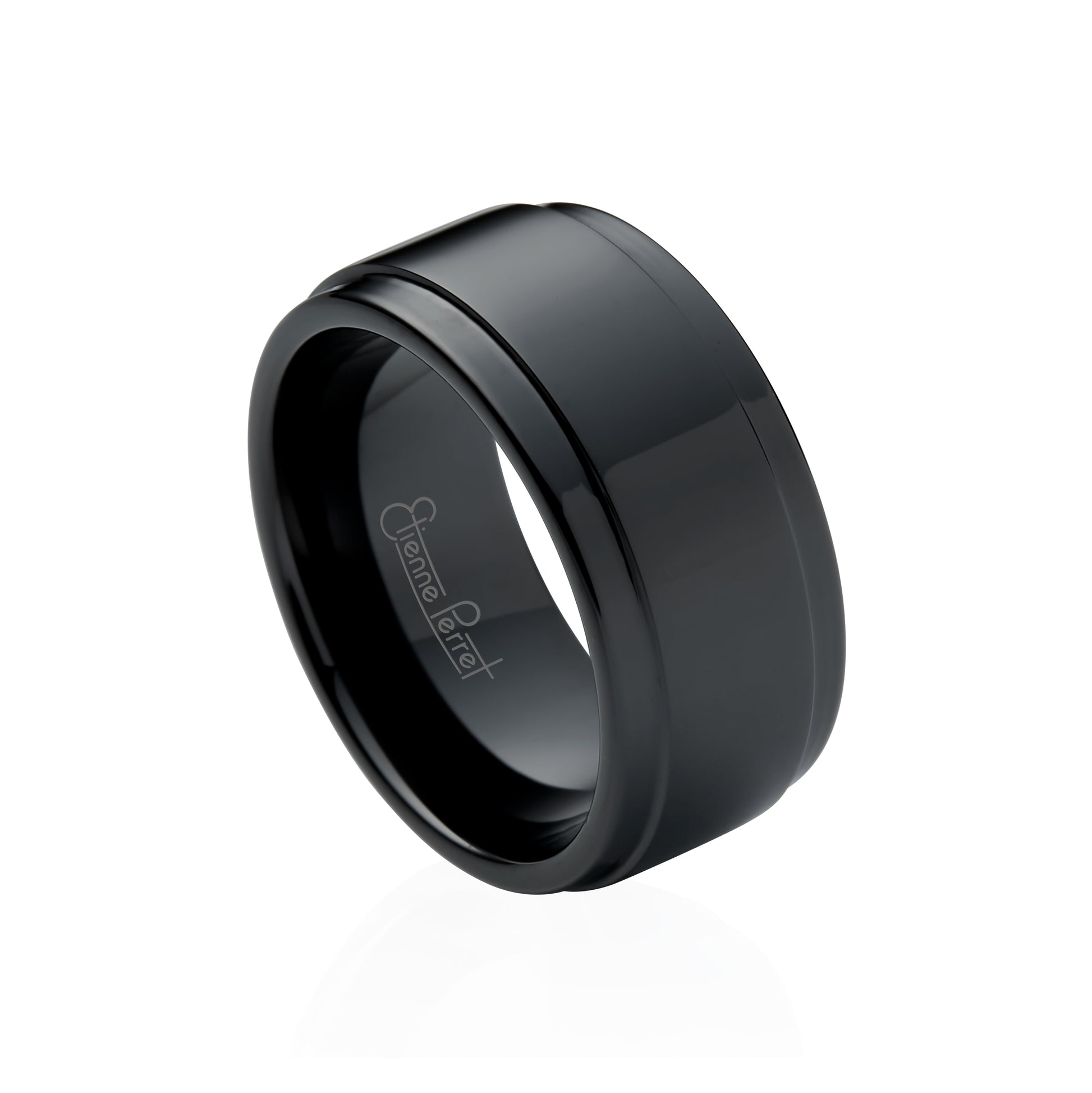 Ten-Millimeter Wide Black Gem Ceramic Band with comfort fit inside. Étienne uses the precise dimensions of ceramic machining to show elegant concentricity with his Ceramic Collection. Jet Black color and Step profile.
