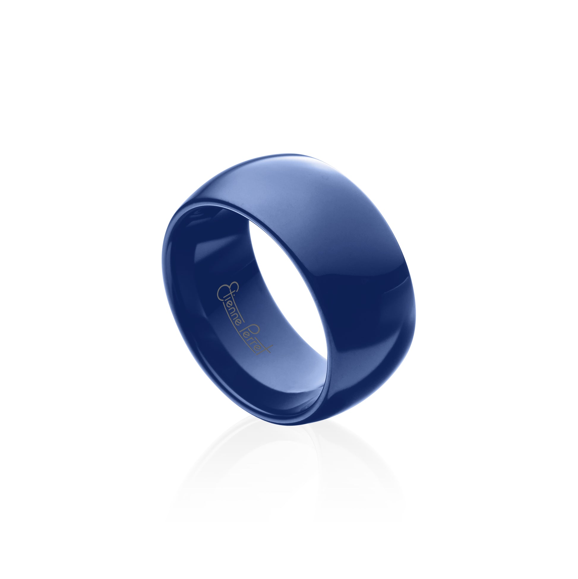 Ten-Millimeter Wide Blue Gem Ceramic Band with comfort fit inside. Étienne uses the precise dimensions of ceramic machining to show elegant concentricity with his Ceramic Collection. Timeless Lapis Blue color and Dome profile.