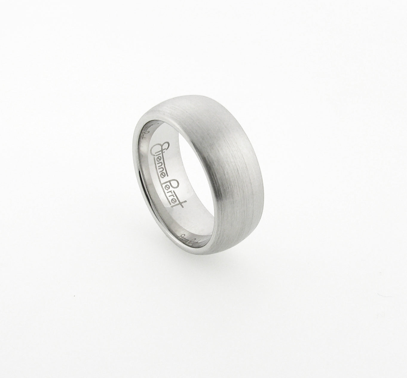 Eight-Millimeter Wide Chrome Gem Ceramic Band with comfort fit inside. Étienne uses the precise dimensions of ceramic machining to show elegant concentricity with his Ceramic Collection. Timeless Cobalt Chrome color and Dome profile.