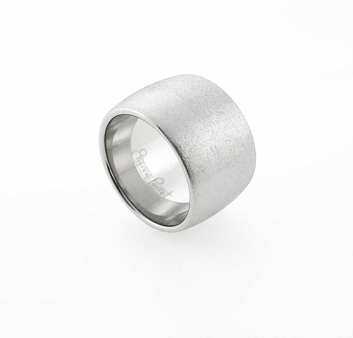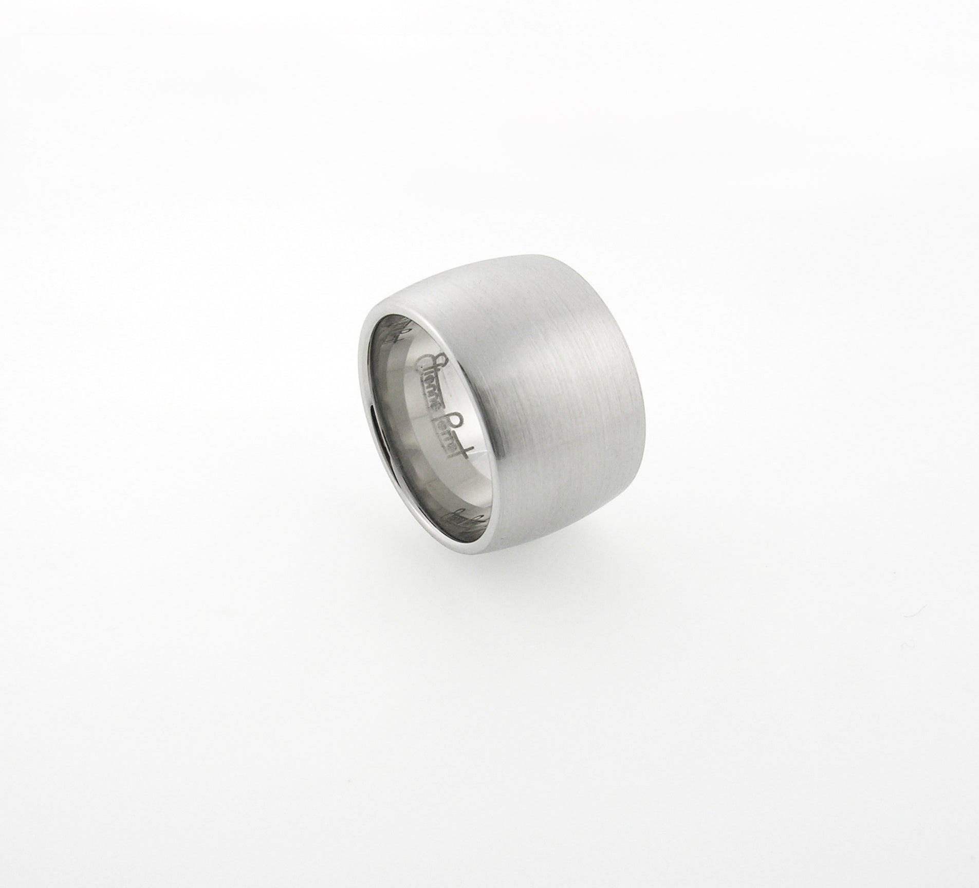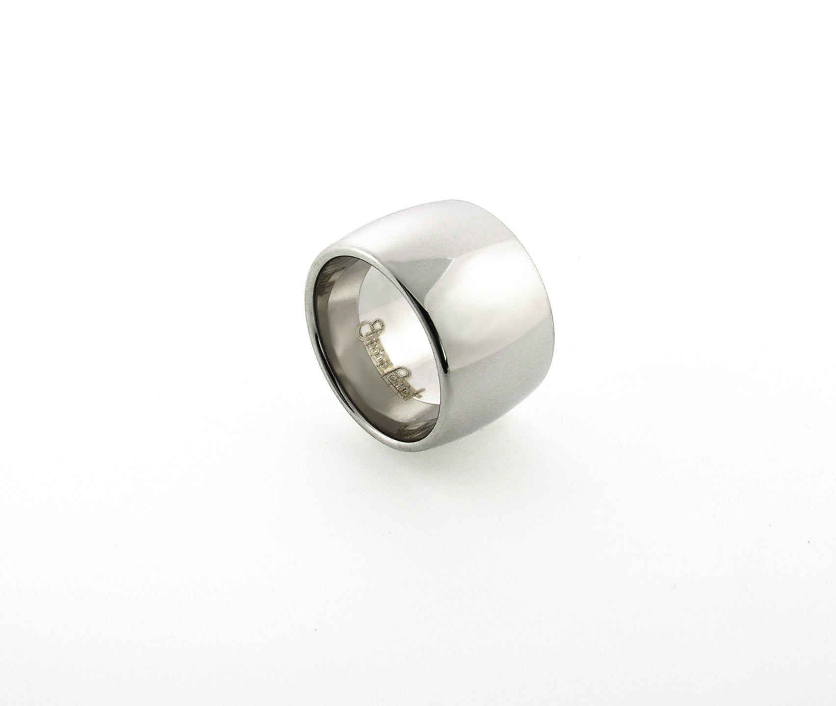 Fourteen-Millimeter Wide Chrome Gem Ceramic Band with comfort fit inside. Étienne uses the precise dimensions of ceramic machining to show elegant concentricity with his Ceramic Collection. Timeless Cobalt Chrome color and Dome profile.