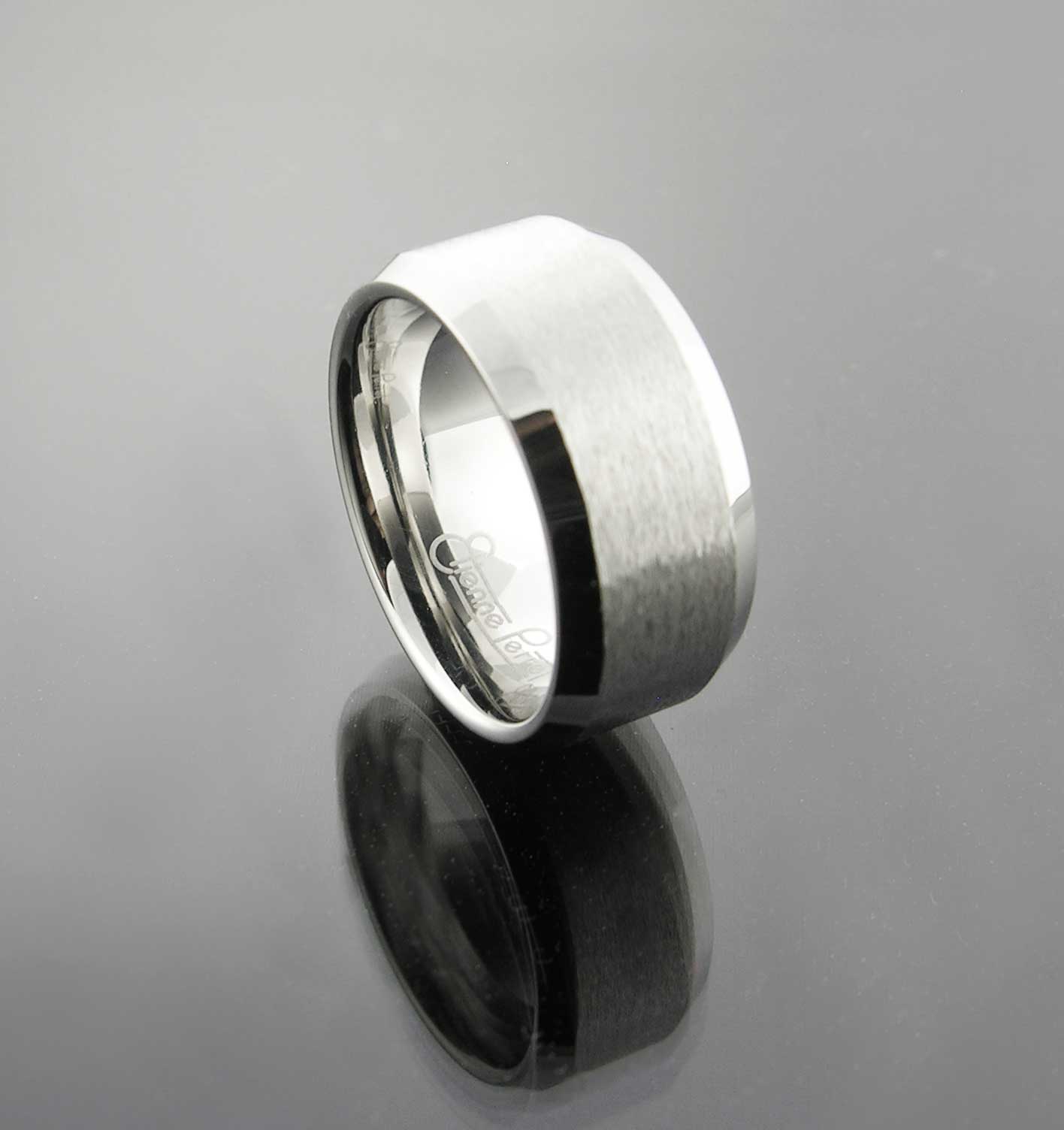 Ten-Millimeter Wide Chrome Gem Ceramic Band with comfort fit inside. Étienne uses the precise dimensions of ceramic machining to show elegant concentricity with his Ceramic Collection. Cobalt Chrome color and Bevel Edge profile.