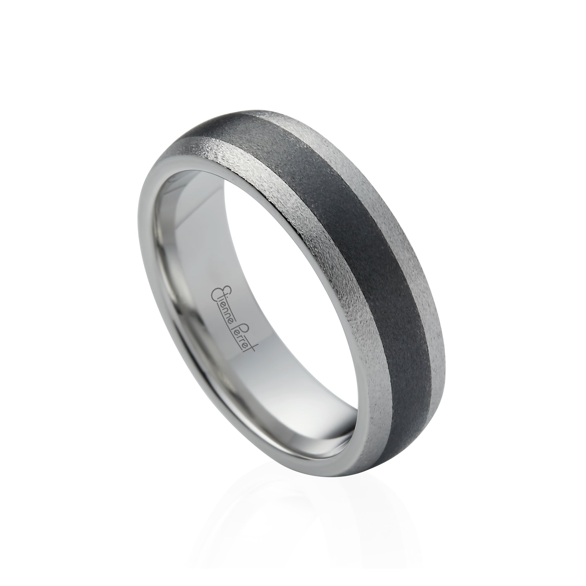 The Cobalt Chrome with Polished Black Gem Ceramic Inlay Band is a 6mm wide ring designed by jewelry designer Etienne Perret. The ring features a cobalt chrome band with a polished black gem ceramic inlay. The black gem ceramic used in this ring is a high-tech material, often used in various high-tech fields such as aerospace, automotive, and medical industries due to its high strength, hardness, and durability. The polished finish of the ceramic adds a shine to the ring, making it stand out. The cobalt chrome band gives the ring a sleek and modern look. The 6mm width of the band is considered a standard width for men's rings. Etienne Perret is known for their unique designs and high-quality materials, making this ring a one-of-a-kind piece.