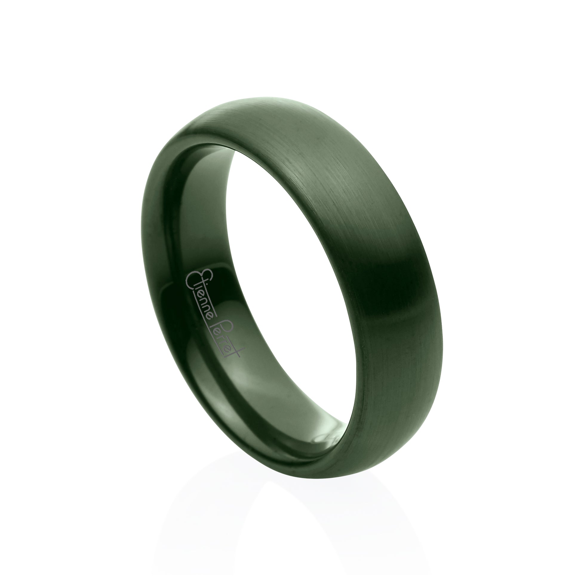 Six-Millimeter Wide Green Gem Ceramic Band with comfort fit inside. Étienne uses the precise dimensions of ceramic machining to show elegant concentricity with his Ceramic Collection. Timeless Jade Green color and Dome profile.