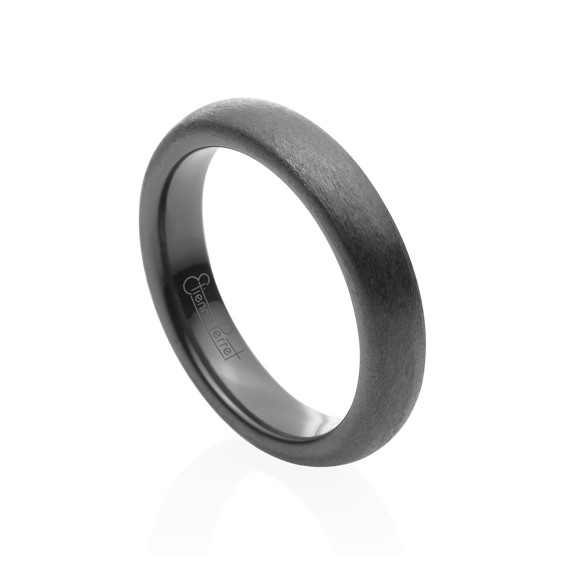 Four-Millimeter Wide Grey Gem Ceramic Band with comfort fit inside. Étienne uses the precise dimensions of ceramic machining to show elegant concentricity with his Ceramic Collection. Timeless Slate Grey color and Dome profile.
