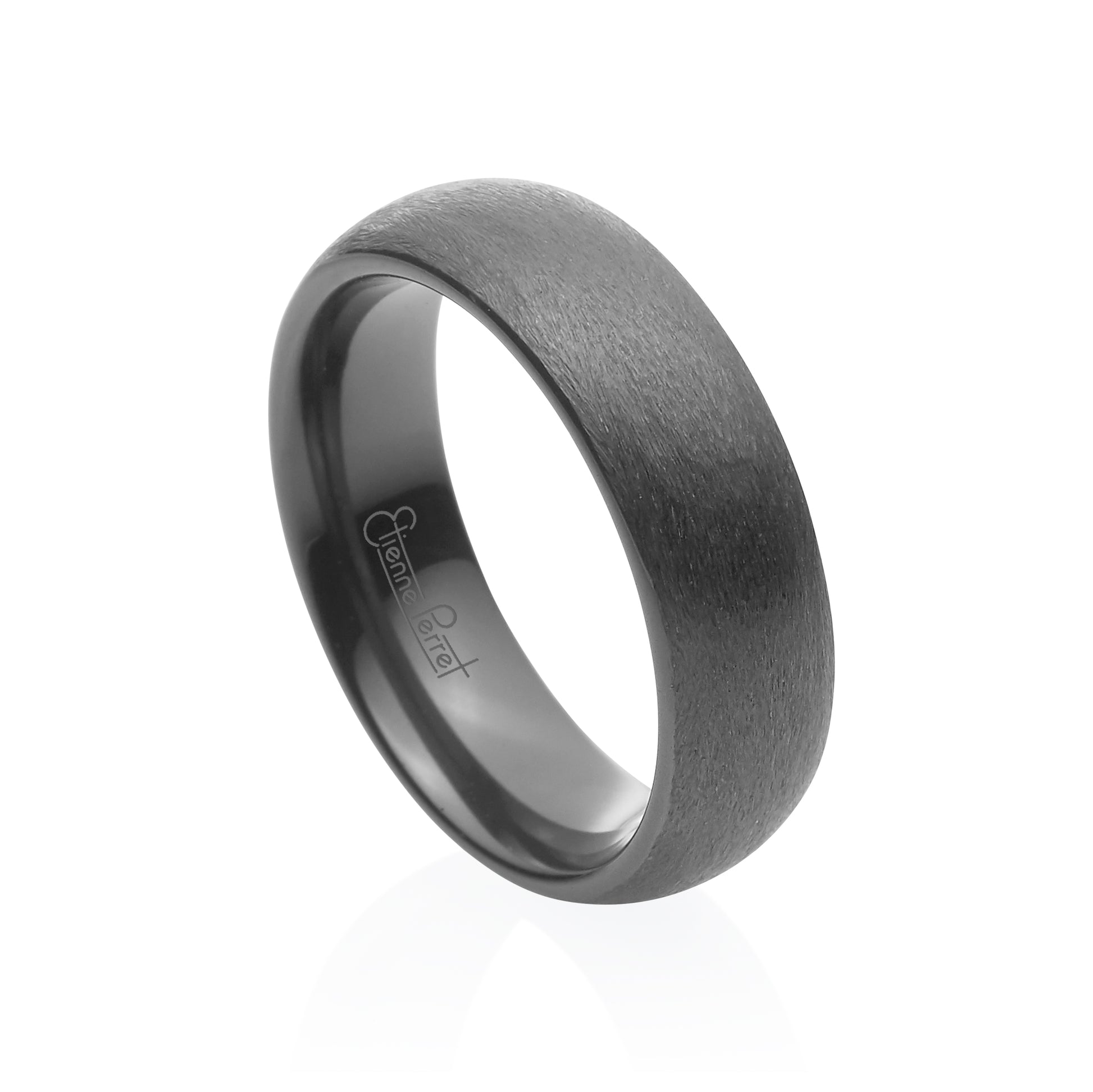 Six-Millimeter Wide Grey Gem Ceramic Band with comfort fit inside. Étienne uses the precise dimensions of ceramic machining to show elegant concentricity with his Ceramic Collection. Timeless Slate Grey color and Dome profile.