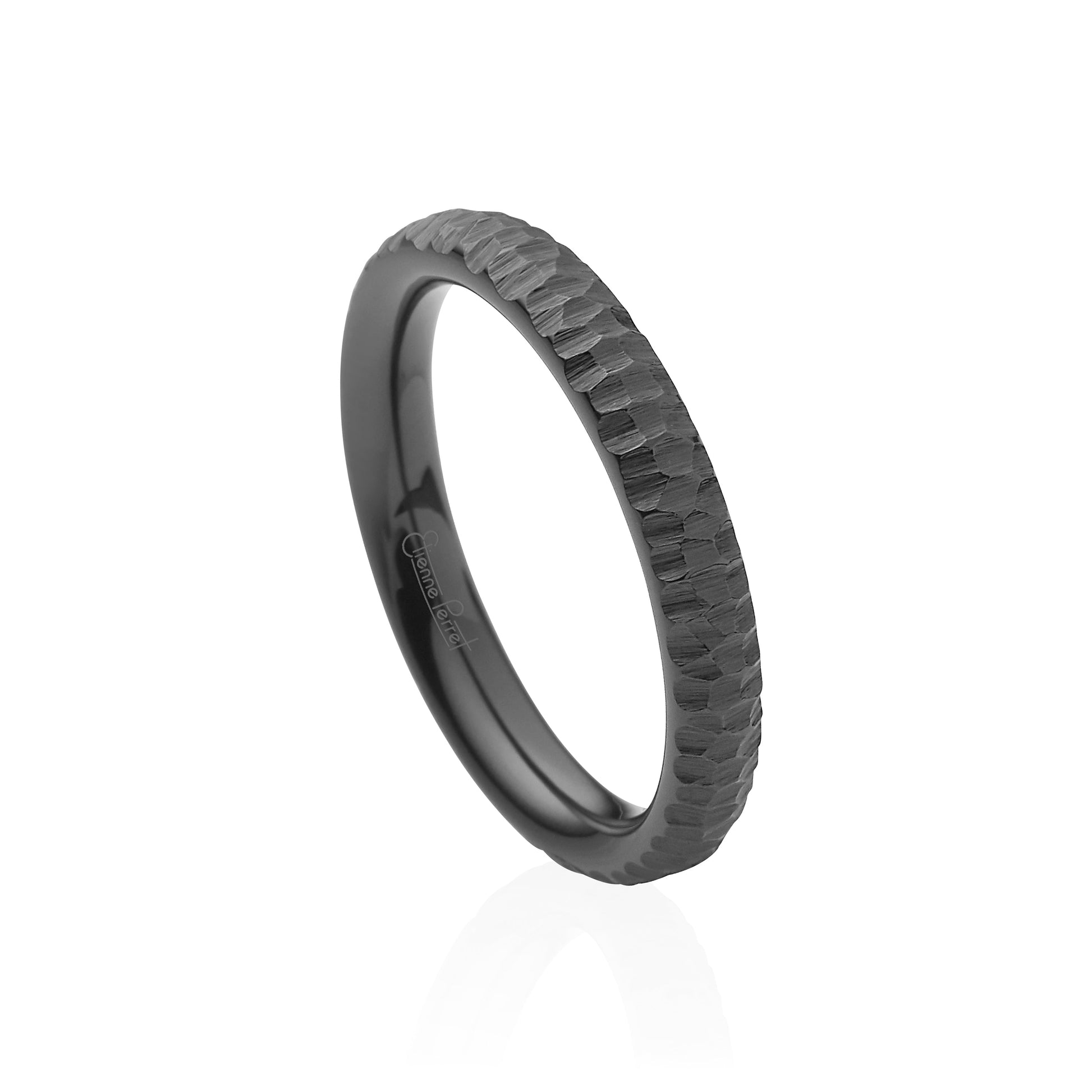 Three-Millimeter Wide Grey Gem Ceramic Band with comfort fit inside. Étienne uses the precise dimensions of ceramic machining to show elegant concentricity with his Ceramic Collection. Timeless Grey color and Bark finish.