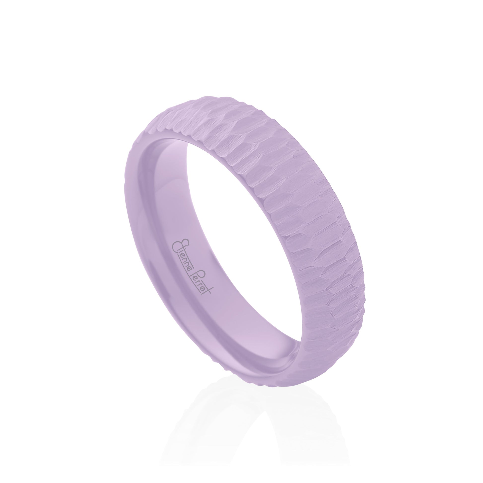 Three-Millimeter Wide Lavender Gem Ceramic Band with comfort fit inside. Étienne uses the precise dimensions of ceramic machining to show elegant concentricity with his Ceramic Collection. Timeless Lavender color and Bark finish.