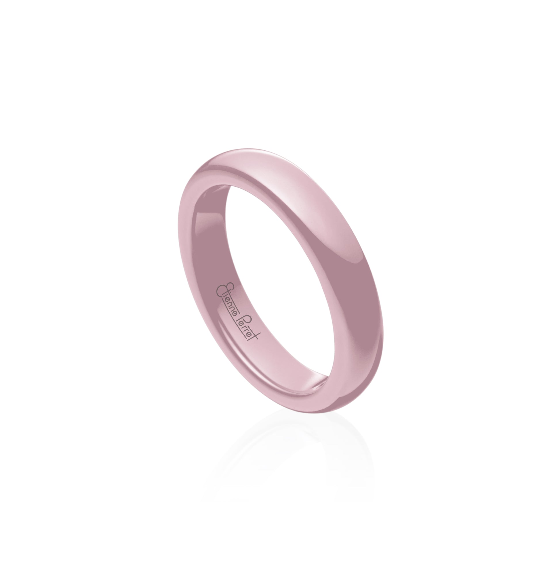 Five-Millimeter Wide Pink Gem Ceramic Band with comfort fit inside. Étienne uses the precise dimensions of ceramic machining to show elegant concentricity with his Ceramic Collection. Timeless Baby Pink color and Dome profile.