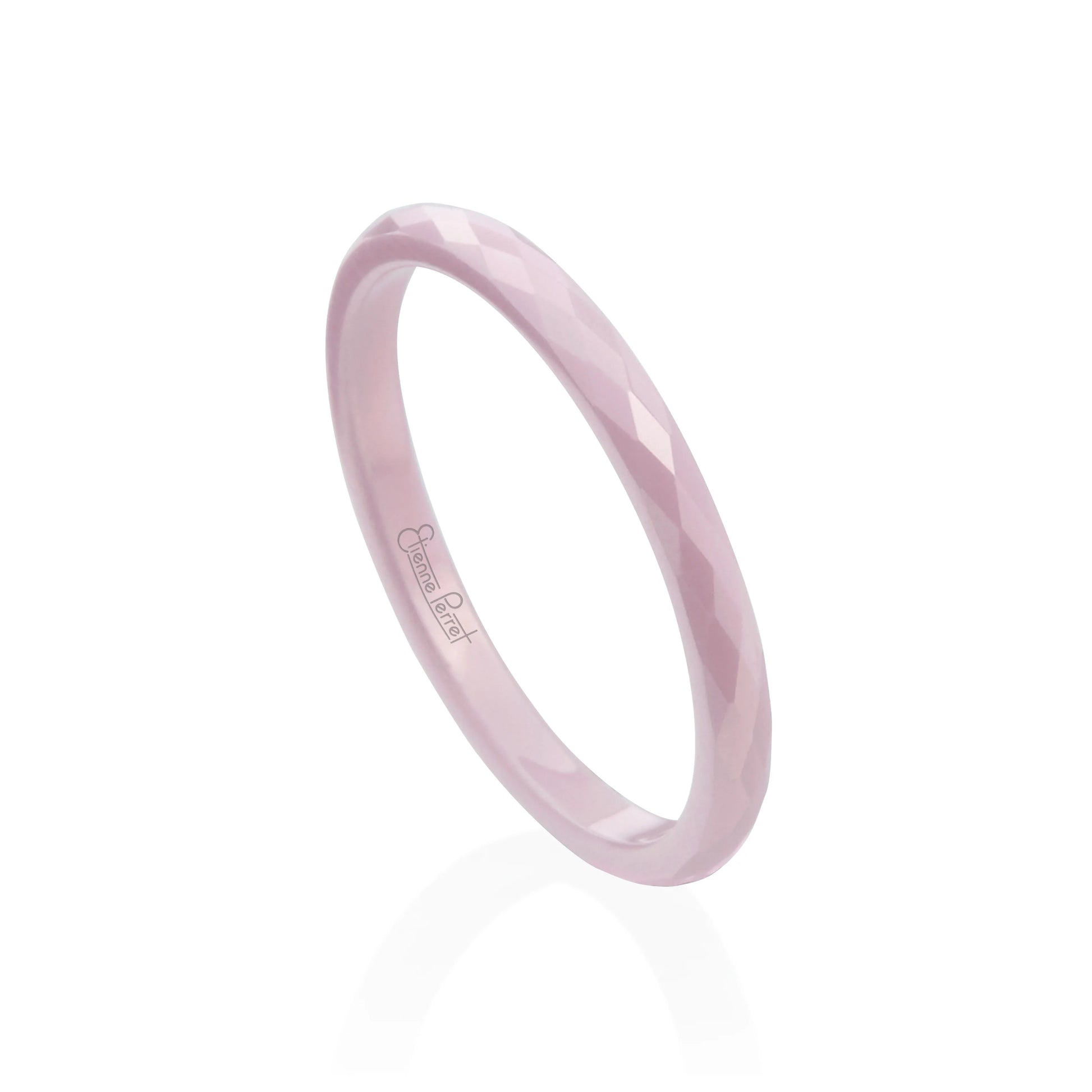 Two-Millimeter Wide Pink Gem Ceramic Band with comfort fit inside. Étienne uses the precise dimensions of ceramic machining to show elegant concentricity with his Ceramic Collection. Timeless Pink color and Faceted finish.