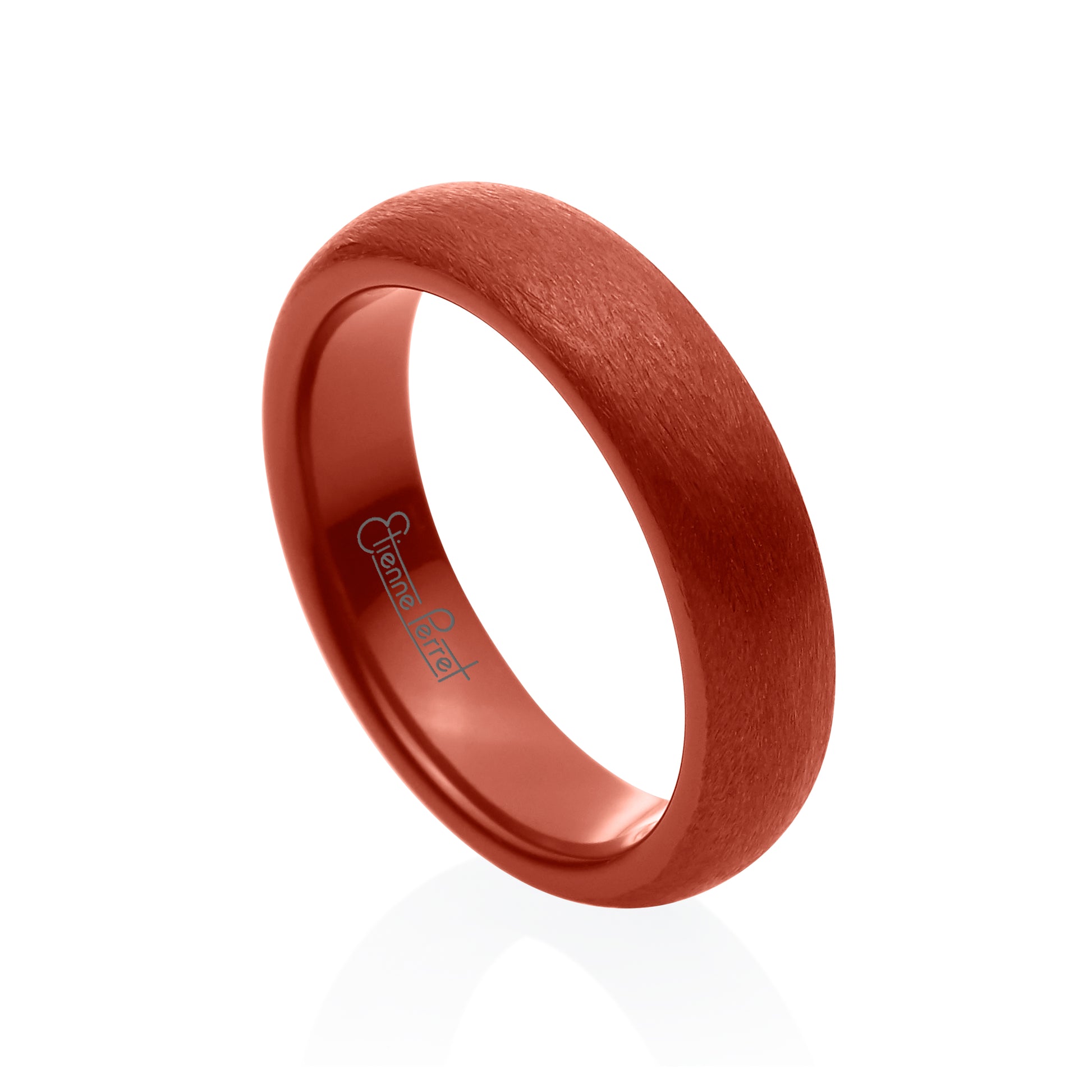 Five-Millimeter Wide Red Gem Ceramic Band with comfort fit inside. Étienne uses the precise dimensions of ceramic machining to show elegant concentricity with his Ceramic Collection. Timeless Crimson Red color and Dome profile.