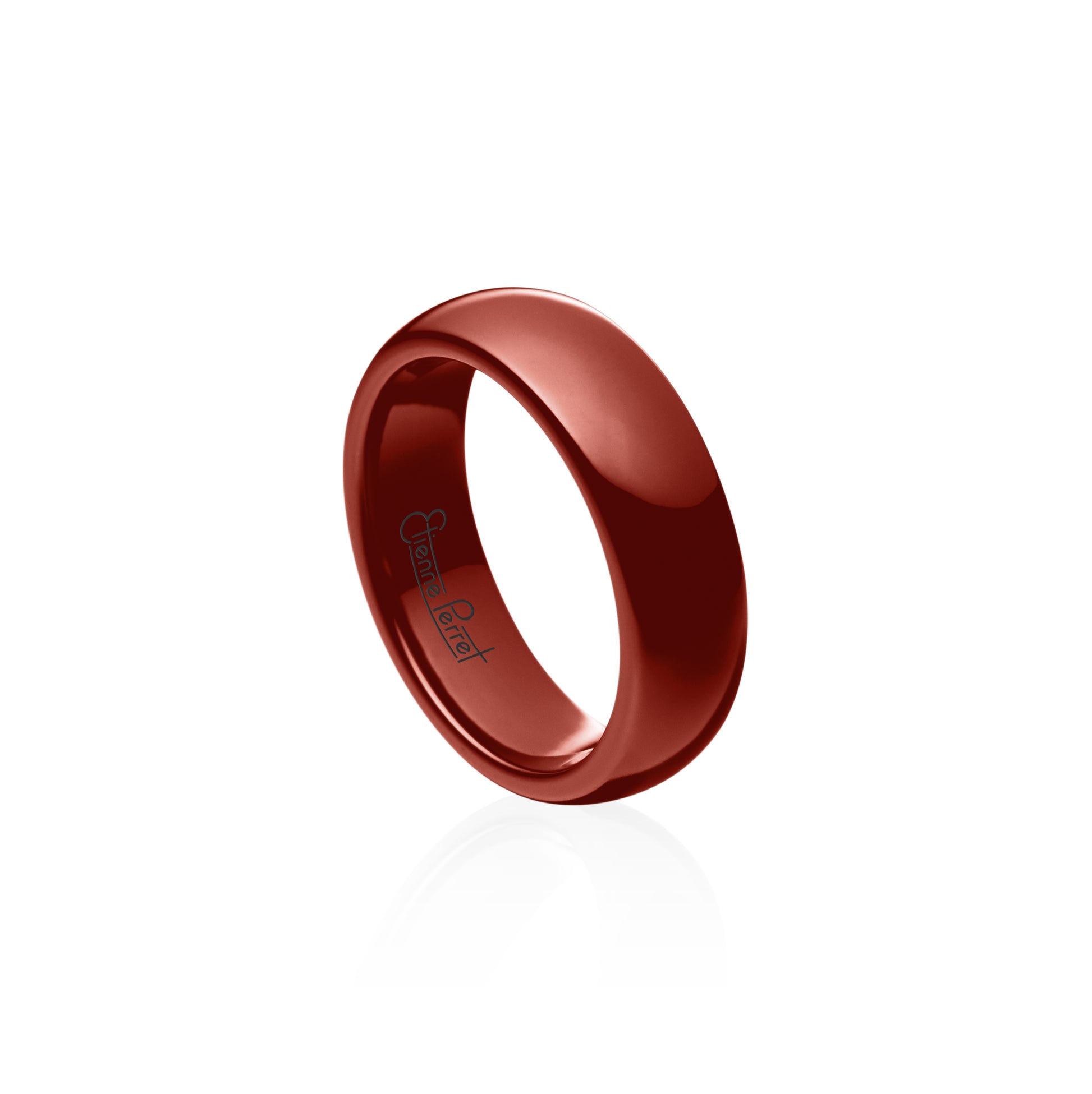 Six-Millimeter Wide Red Gem Ceramic Band with comfort fit inside. Étienne uses the precise dimensions of ceramic machining to show elegant concentricity with his Ceramic Collection. Timeless Crimson Red color and Dome profile.