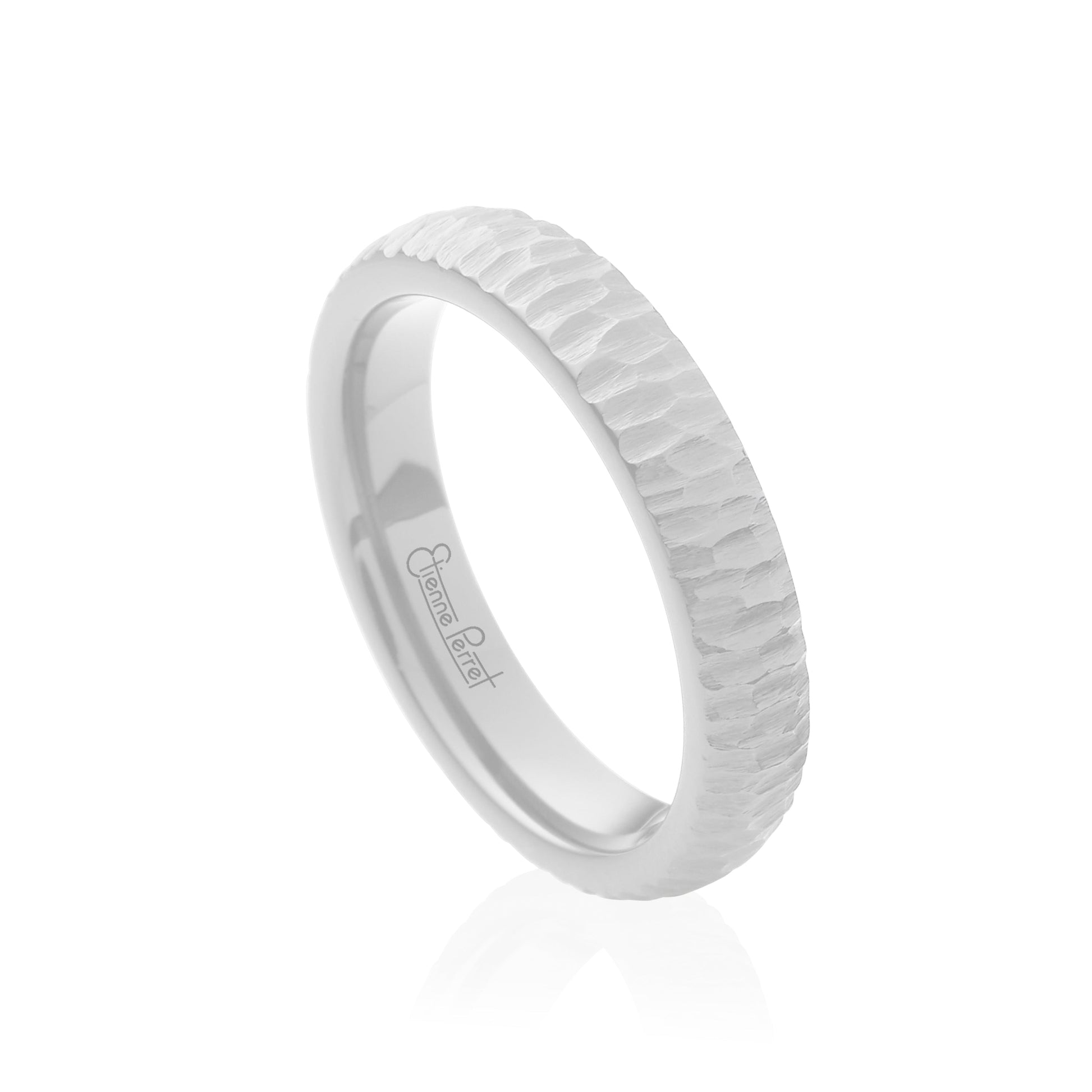 Four-Millimeter Wide White Gem Ceramic Band with comfort fit inside. Étienne uses the precise dimensions of ceramic machining to show elegant concentricity with his Ceramic Collection. Timeless White color and Bark finish.