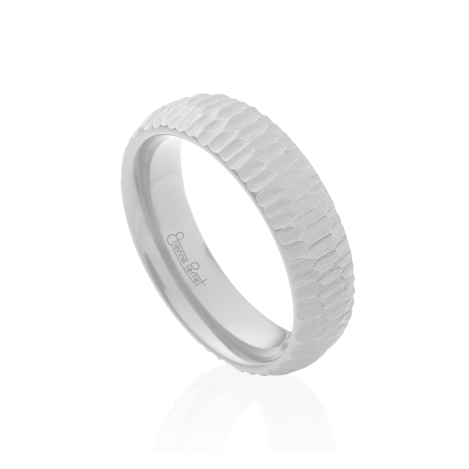 Six-Millimeter Wide White Gem Ceramic Band with comfort fit inside. Étienne uses the precise dimensions of ceramic machining to show elegant concentricity with his Ceramic Collection. Timeless White color and Bark finish.