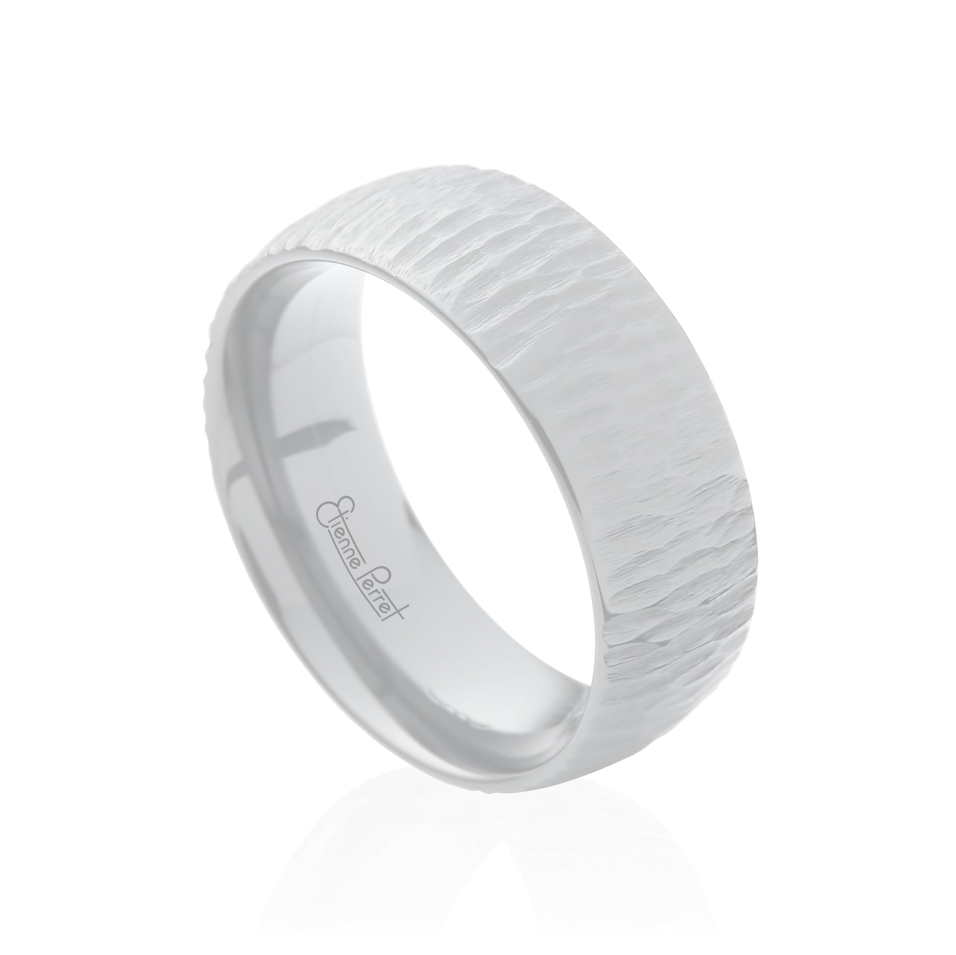 Eight-Millimeter Wide White Gem Ceramic Band with comfort fit inside. Étienne uses the precise dimensions of ceramic machining to show elegant concentricity with his Ceramic Collection. Timeless White color and Bark finish.