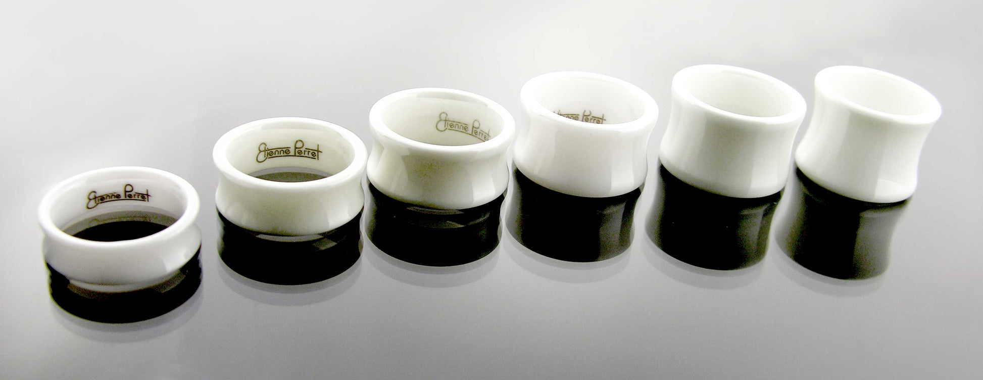 Ten-Millimeter Wide White Gem Ceramic Band with comfort fit inside. Étienne uses the precise dimensions of ceramic machining to show elegant concentricity with his Ceramic Collection. Snow White color and Concave profile.