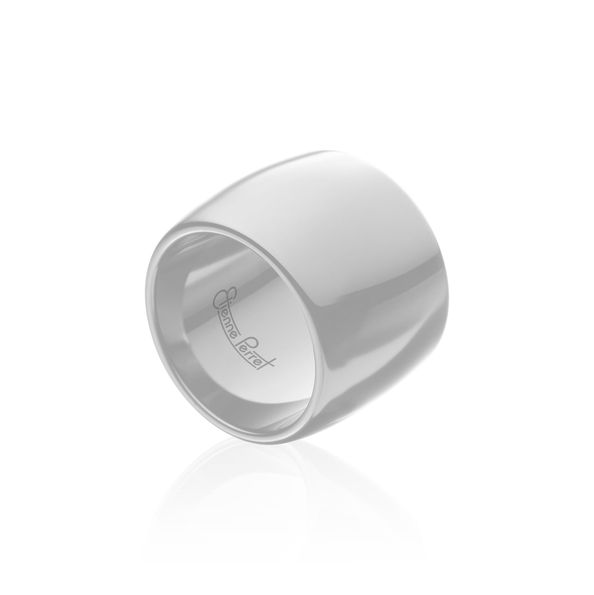 Sixteen-Millimeter Wide White Gem Ceramic Band with comfort fit inside. Étienne uses the precise dimensions of ceramic machining to show elegant concentricity with his Ceramic Collection. Timeless Snow White color and Dome profile.