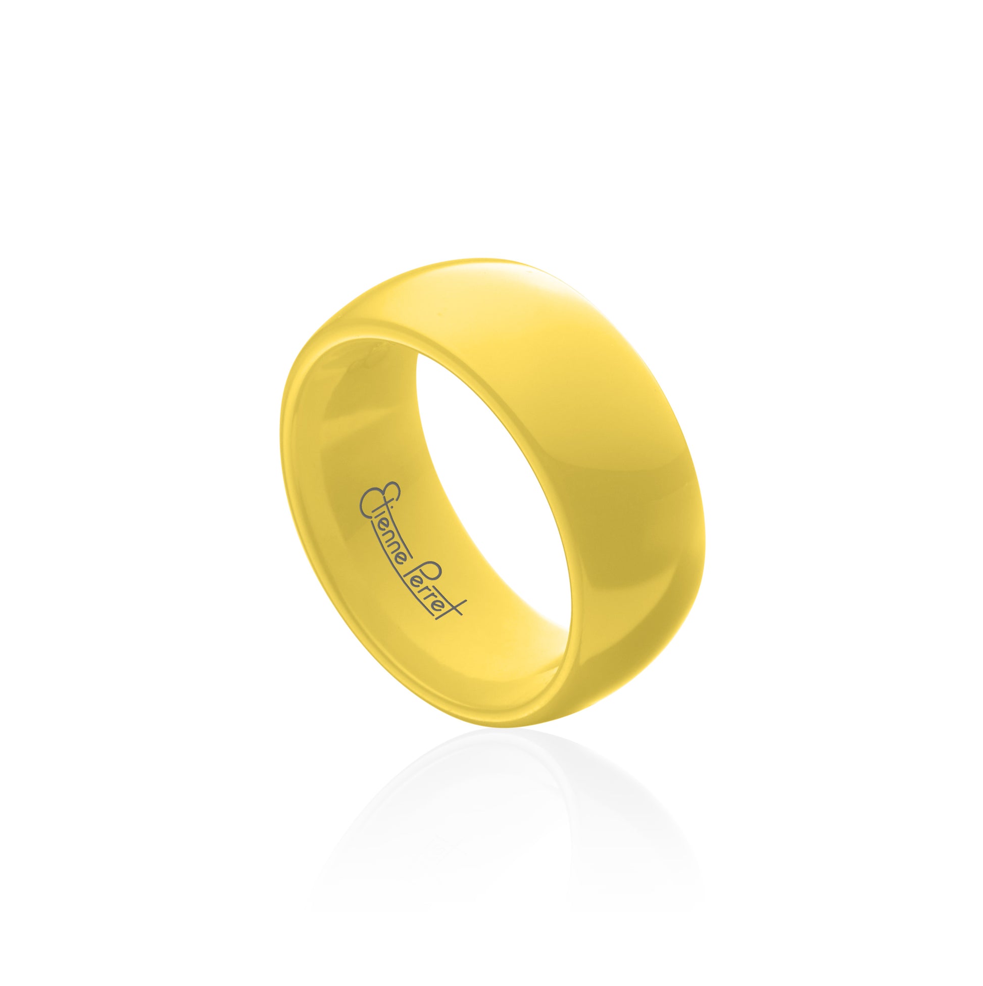 Eight-Millimeter Wide Yellow Gem Ceramic Band with comfort fit inside. Étienne uses the precise dimensions of ceramic machining to show elegant concentricity with his Ceramic Collection. Timeless Canary Yellow color and Dome profile.